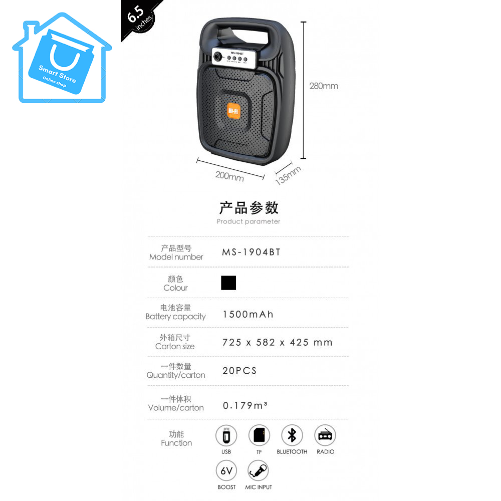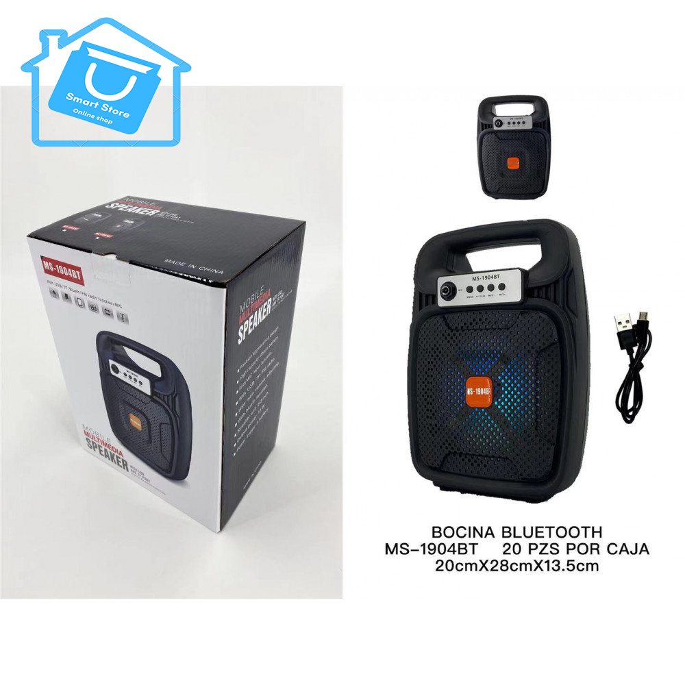 Multimedia Mobile LED Light Portable Bluetooth Wireless Speaker with Handle for iPhone, Cell Phone, Universal Devices MS1904.